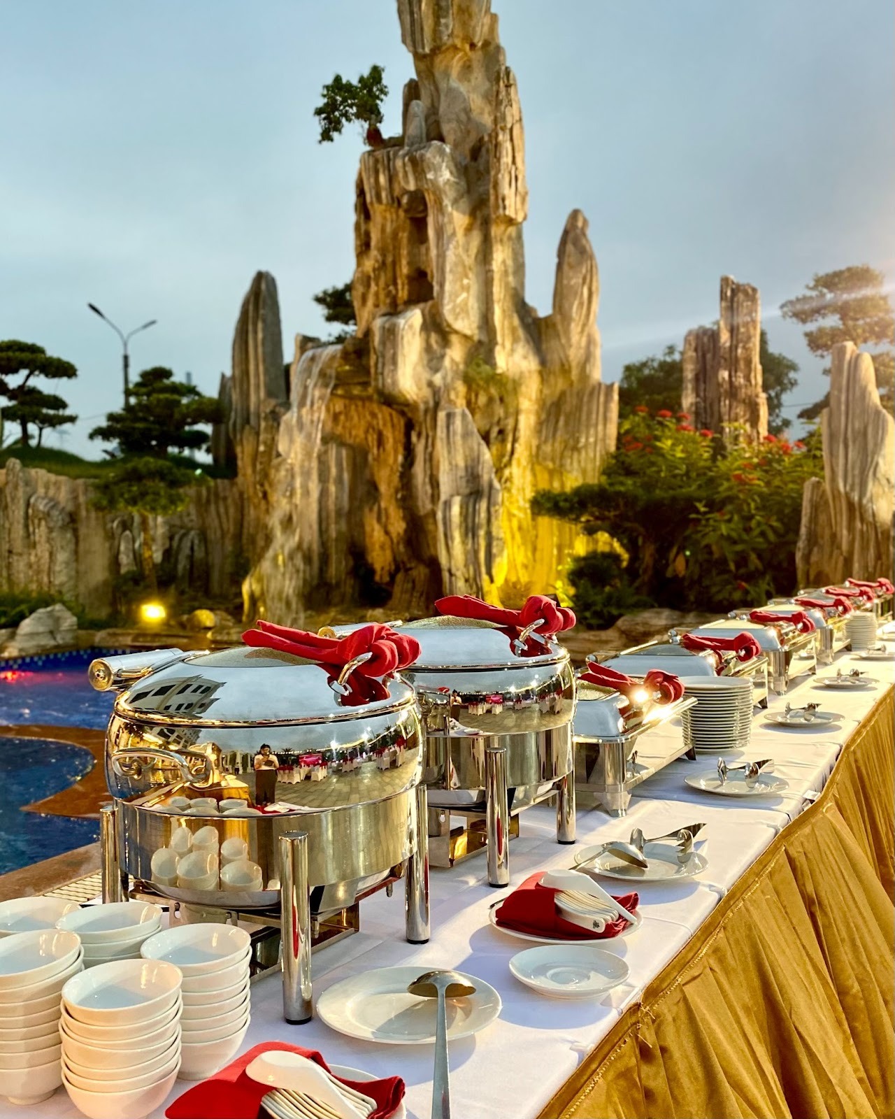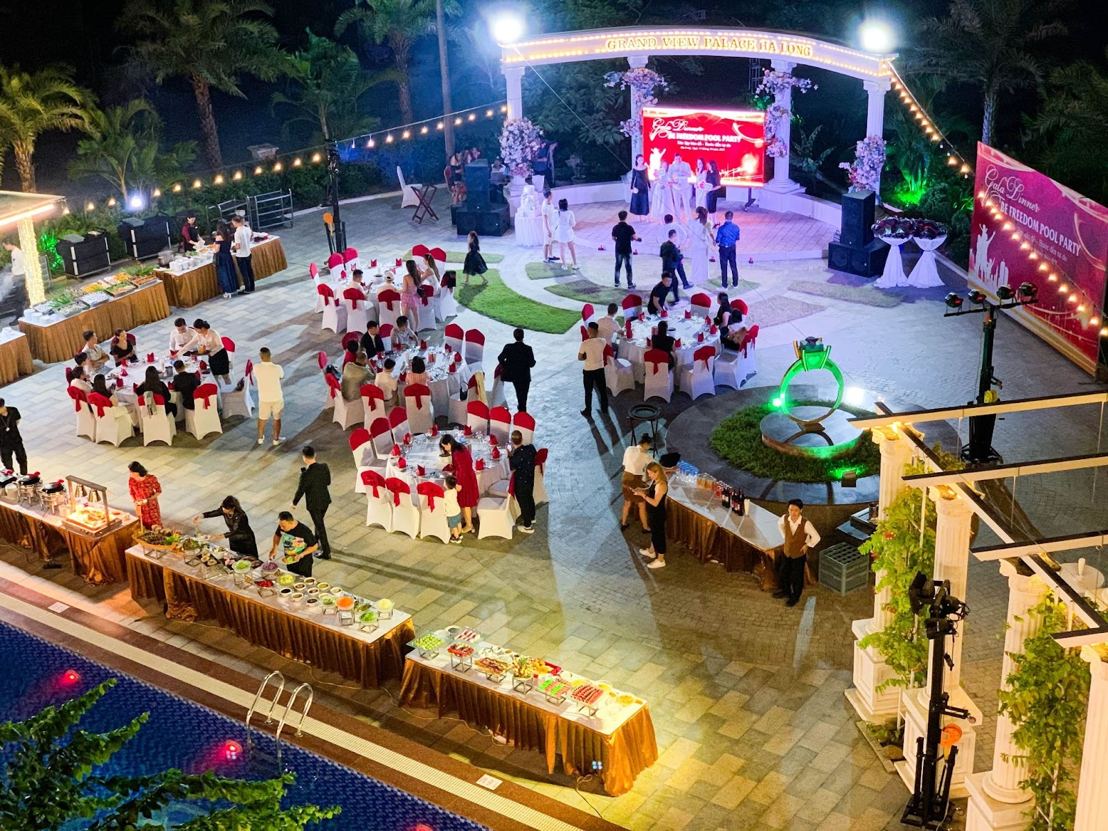 Tổ chức tiệc ngoài trời đòi hỏi sự tinh tế và kinh nghiệm hậu cần gấp đôi so với trong nhà. Grand View Palace tự tin đáp ứng những tiêu chuẩn khắt khe nhất: